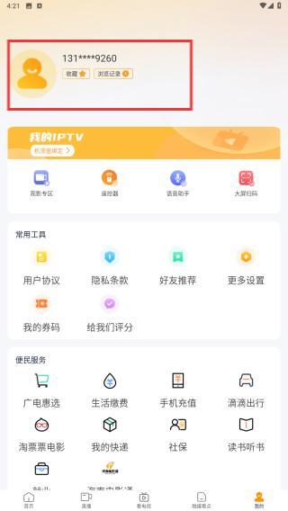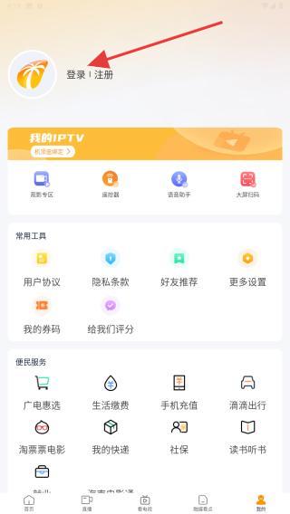 1、打開視聽海南APP進(jìn)入到首頁內(nèi),點(diǎn)擊右下角我的功能圖標(biāo)。