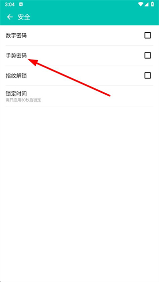 4、若要設(shè)置手勢(shì)密碼,點(diǎn)擊手勢(shì)密碼右側(cè)的方框,依照提示繪制并確認(rèn)手勢(shì)密碼。