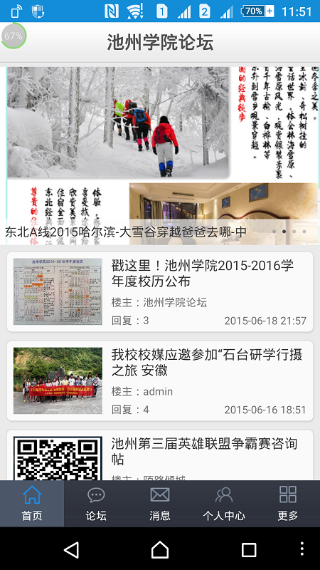 池州學院論壇app已改名為:掌上池院是一款專門為池州學院的學生打造的一個專屬的論壇社區(qū)客戶端,為該校的學生提供一個交流互動的平臺以及信息共享的地方,手機客戶端可以方便學子隨時隨地的進行快速的發(fā)帖回帖,參與話題討論,非常便捷,歡迎需要的朋友來綠色資源下載體驗!