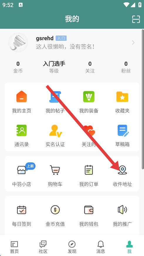 2、在我的頁面中,下滑找到并點擊收件地址選項。