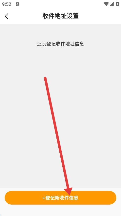 3、進(jìn)入收件地址設(shè)置頁面后,點擊下方的+登記新收件信息按鈕。