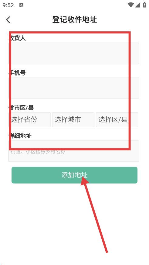 4、根據(jù)要求填寫信息,完成后點擊添加地址,即可成功添加收件地址。