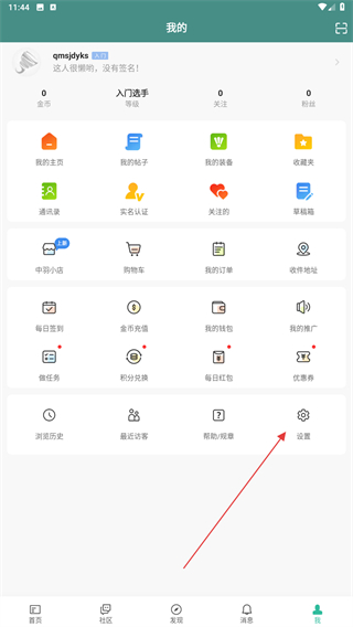 2、進(jìn)入我的頁面內(nèi),點擊最下方設(shè)置的按鈕。