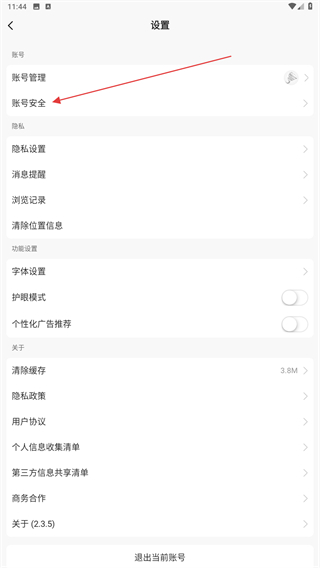 3、在設(shè)置的頁面內(nèi),點擊賬號安全的按鈕。