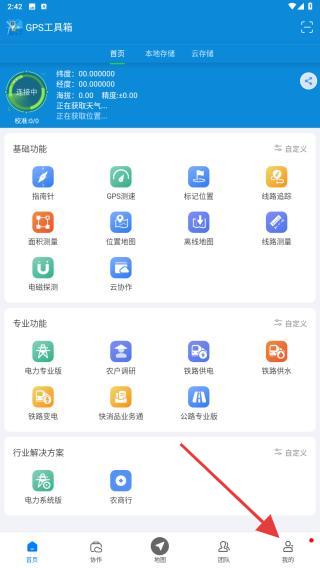 1、打開GPS工具箱APP,在首頁內(nèi)點擊右下角我的圖標(biāo)。