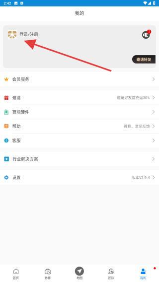 2、在我的主頁內(nèi),點擊登錄/注冊的功能按鈕。