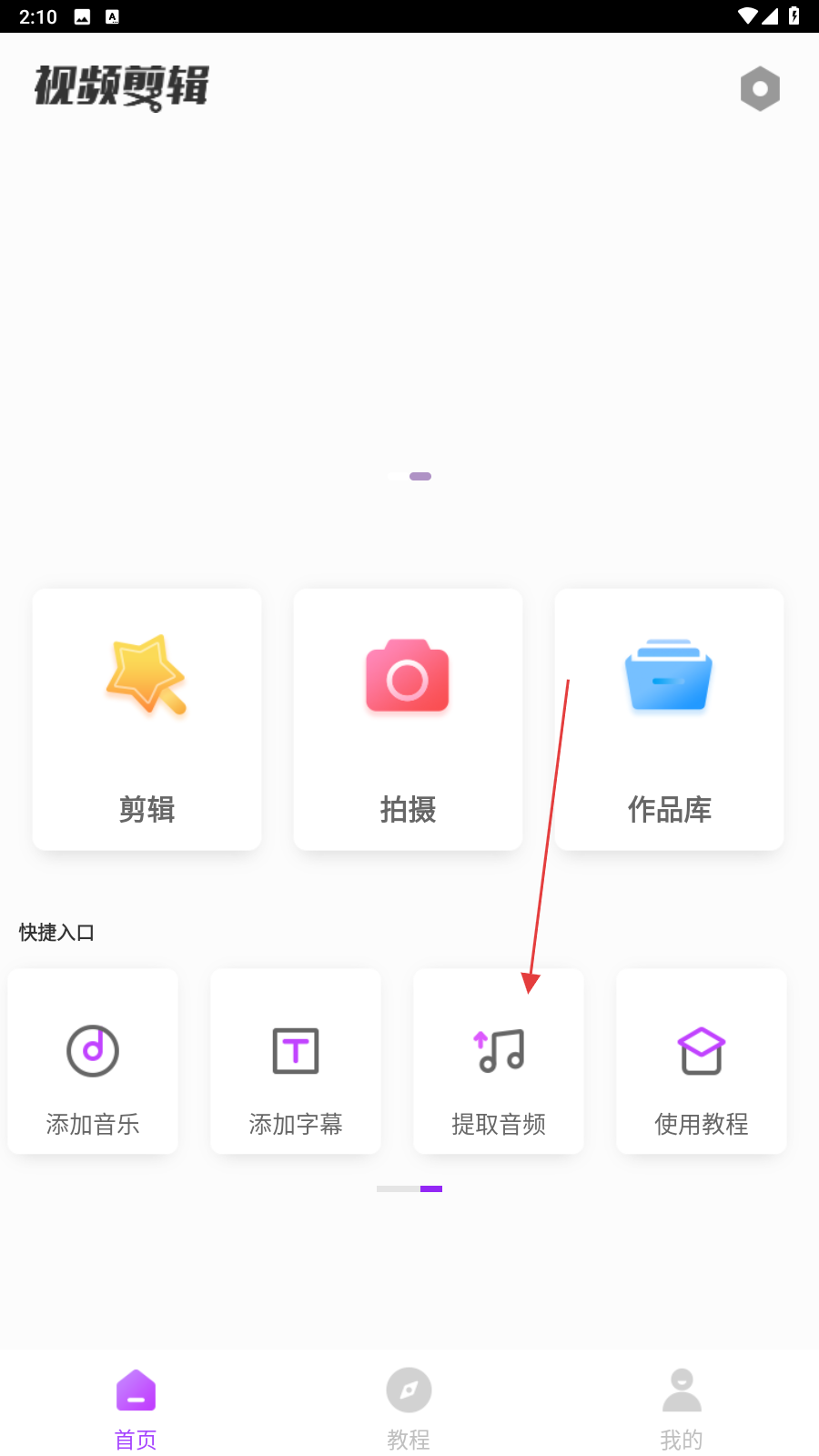 1、啟動視頻剪輯大師APP,在首頁內點擊提取音頻的功能。