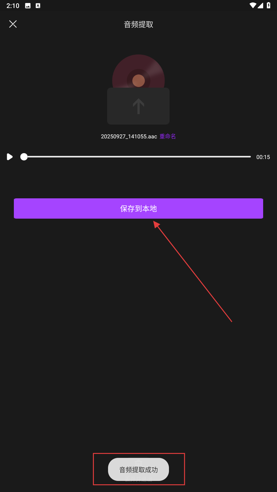 4、點擊后,會顯示音頻提前成功,再點擊保存到本地即可。