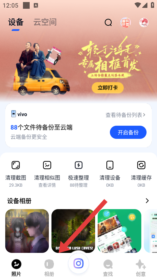 1、打開一刻相冊APP,點(diǎn)擊底部導(dǎo)航欄的相冊選項(xiàng),進(jìn)入相冊管理頁面。
