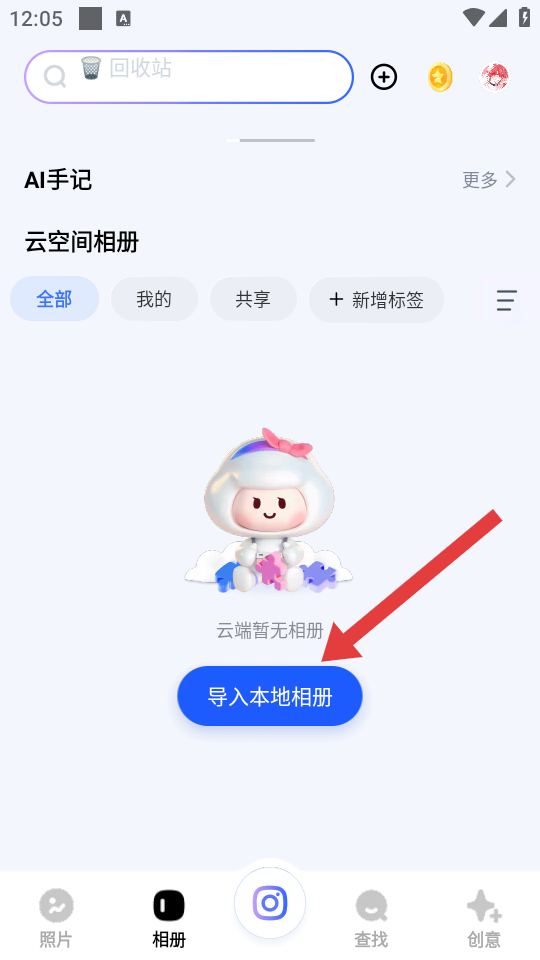 2、在相冊頁面中,點(diǎn)擊導(dǎo)入本地相冊的按鈕,進(jìn)入新建相冊的流程。