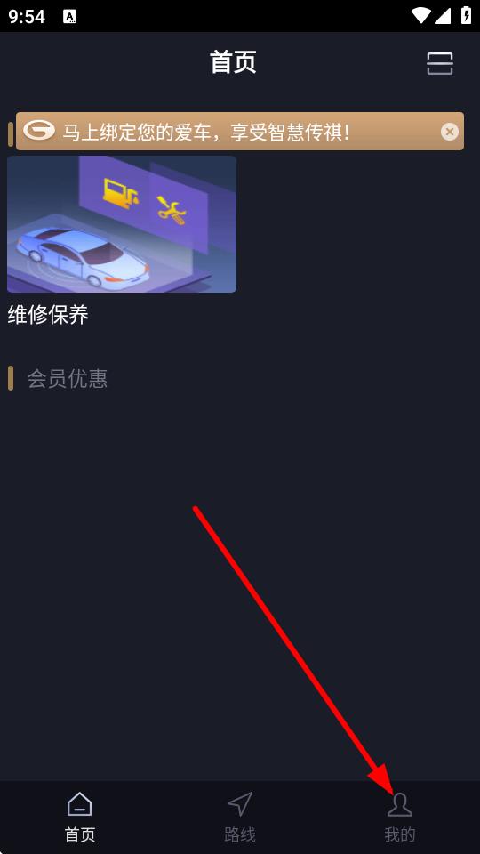 1、打開智慧傳祺app,點擊底部導航欄我的進入個人頁面。