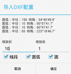 第5步:導(dǎo)入后會(huì)提示找到多少線元,圖形的縮放選項(xiàng),以及要導(dǎo)入的類(lèi)別。圖形縮放是指CAD斷面圖中的尺寸可能與現(xiàn)實(shí)不符,比如二襯真實(shí)半徑是5.5m,圖紙上量得半徑是55,這是就需要縮小10倍,你可以輸入縮放前:55、縮放后:5.5(輸入10:1也是可以的),這樣導(dǎo)入后就是5.5的真實(shí)半徑了。