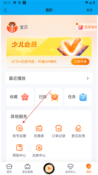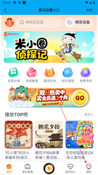 1、進入喜馬拉雅少兒板塊后,點擊我的。