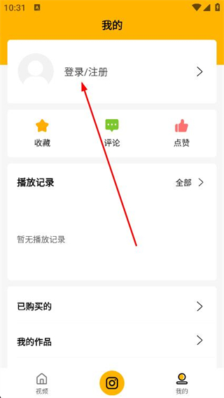 2、在我的頁(yè)面中,點(diǎn)擊上分的登錄/注冊(cè)選項(xiàng)。