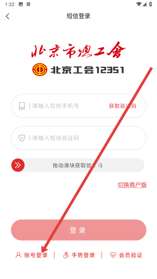3、在進入到登錄頁面后,可以點擊下方賬號登錄按鈕,切換登錄方式。