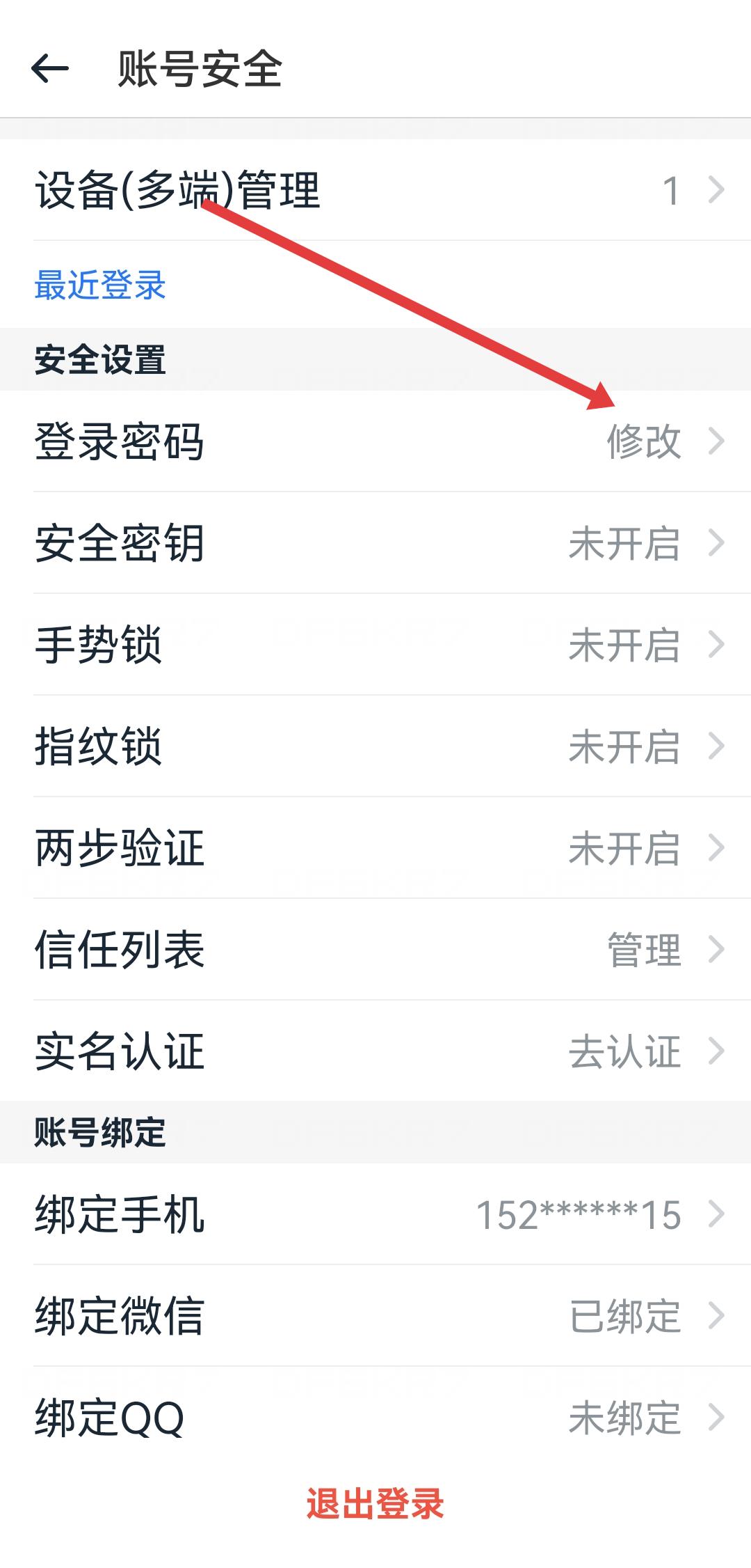 2、在賬號安全頁面中,找到登錄密碼選項,點擊其右側(cè)的修改按鈕,進入修改密碼流程。