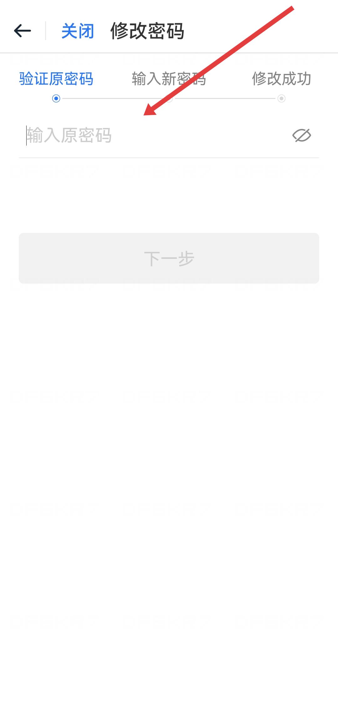3、在修改密碼的驗證原密碼步驟,在輸入框中輸入當(dāng)前的登錄密碼,完成原密碼驗證。