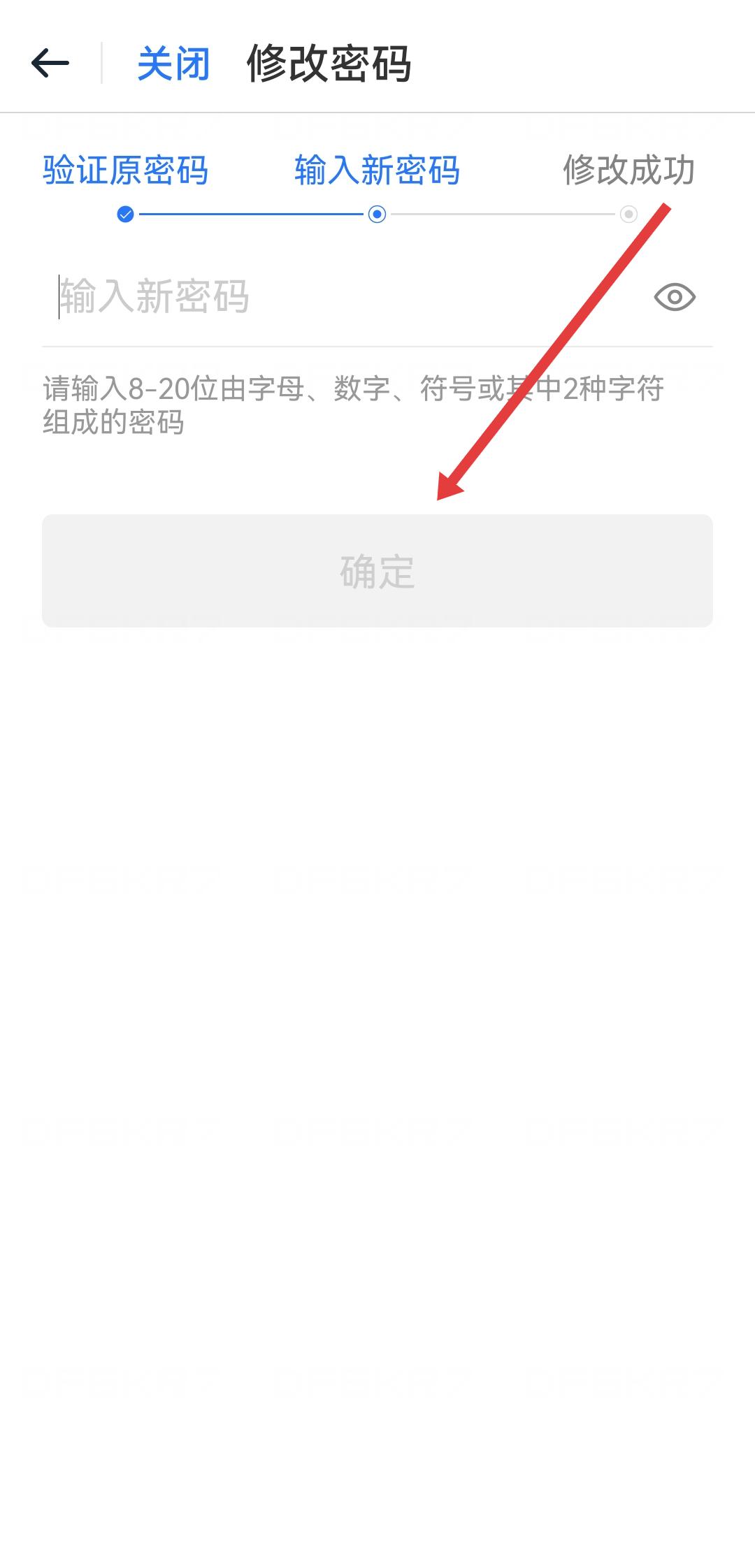 4、驗證原密碼通過后,進入輸入新密碼步驟,輸入新密碼,然后點擊確定按鈕,完成密碼修改。