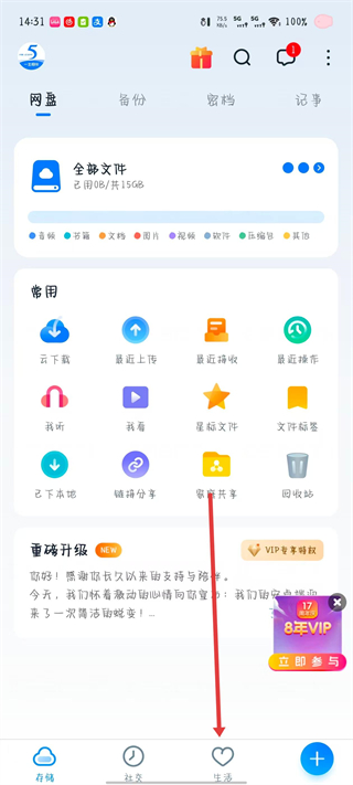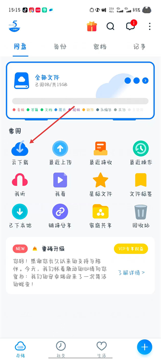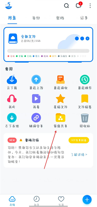 1.存儲:網(wǎng)盤首頁UI全新優(yōu)化,文件分類更清晰,找文件更快更順手。