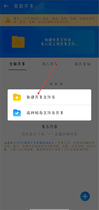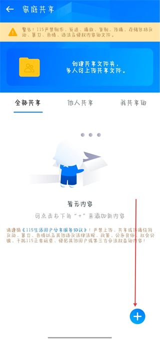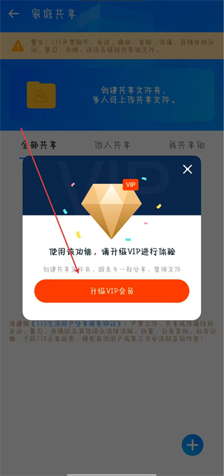 1、打開115網(wǎng)盤應(yīng)用,點擊家庭共享選項。
