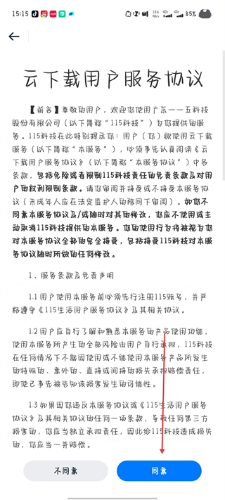 3、在云下載用戶服務(wù)協(xié)議頁面,點擊同意。