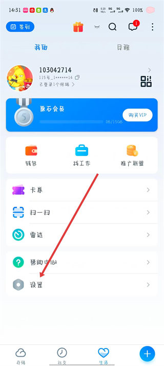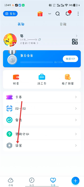 1、打開115網(wǎng)盤APP,進入我的頁面,點擊設(shè)置選項。