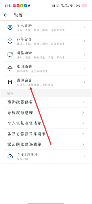 3、進入設(shè)置頁面之后,點擊通用設(shè)置的選項。