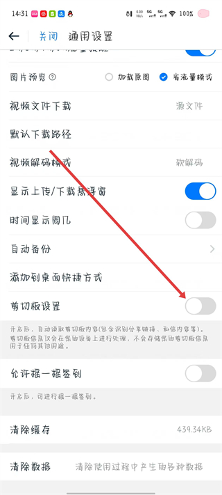 4、在通用設(shè)置頁面,點擊剪切板設(shè)置的開關(guān)按鈕。