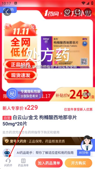 2、在商品的詳情頁(yè)面,點(diǎn)擊問(wèn)藥師。