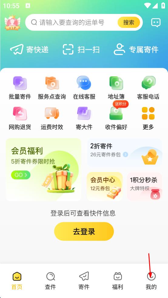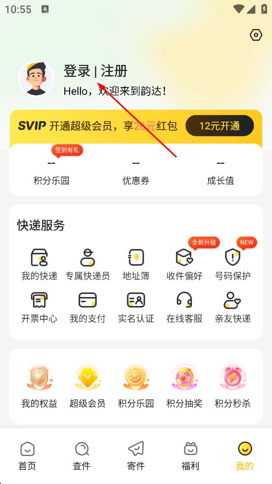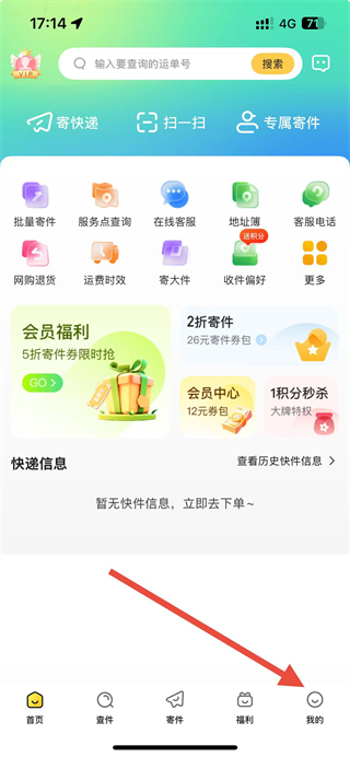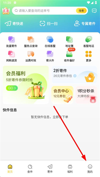 1、打開韻達快遞APP后,在底部導航欄點擊我的進入個人界面。