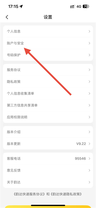 2、在設(shè)置頁面中,點擊賬戶與安全選項,進入賬戶安全界面。