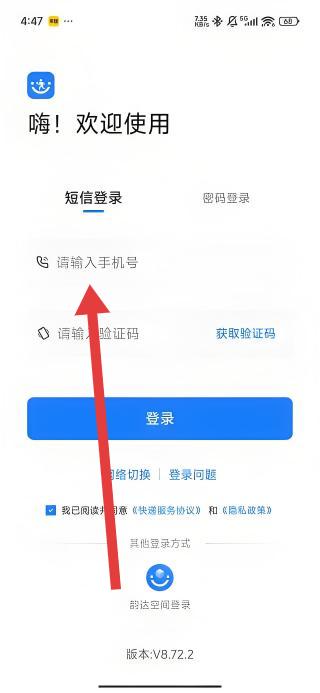3、進入到登錄頁面時,需要點擊請輸入手機號輸入框,填寫號碼后點擊登錄,完成登錄賬號進入軟件。