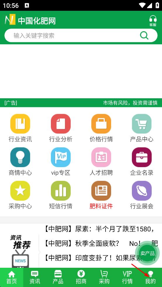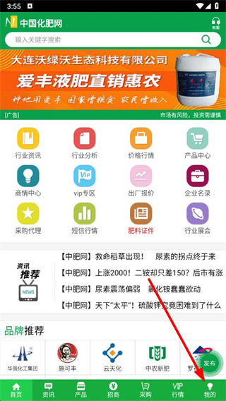 1、打開中國化肥網(wǎng),進(jìn)入首頁后,點擊頁面右下角的“我的”選項,進(jìn)入個人相關(guān)頁面。