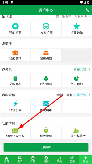 2、在用戶中心頁面中,點擊修改個人資料選項。