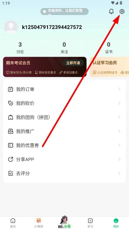 2、在個人界面中,點擊右上角設(shè)置圖標(biāo)進入設(shè)置頁面。