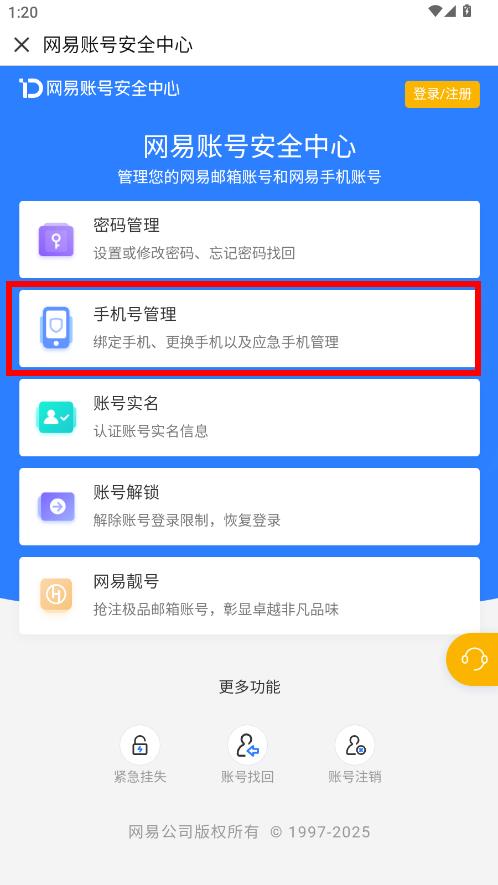 5、在網(wǎng)易賬號安全中心頁面,點擊手機號管理,按提示操作即可完成換綁手機號。