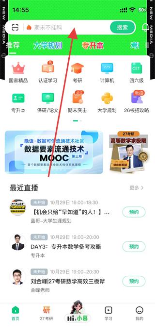 1、打開慕課app,點擊主頁上方的搜索欄。