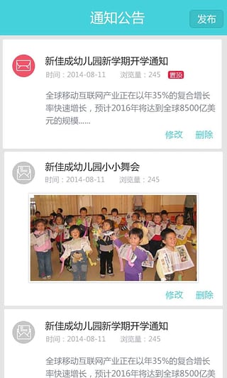 園方通過管理平臺(tái)向客戶端實(shí)時(shí)發(fā)布通知公告,家長(zhǎng)即時(shí)掌握?qǐng)@方動(dòng)態(tài),方便、高效、快捷、環(huán)保。