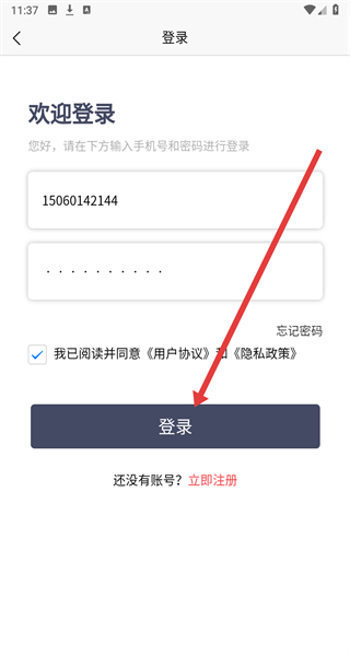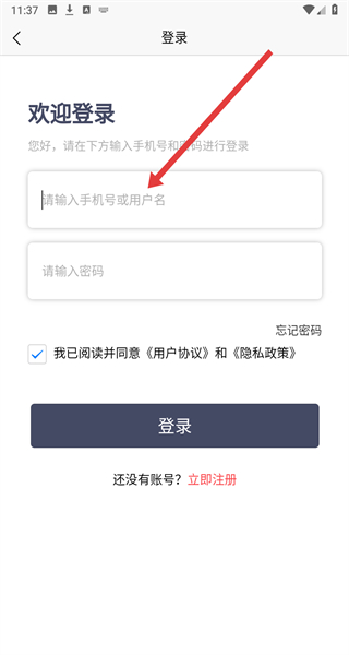 3、在跳轉(zhuǎn)到登錄頁面中時,可點擊輸入框依次輸入手機號和密碼信息。