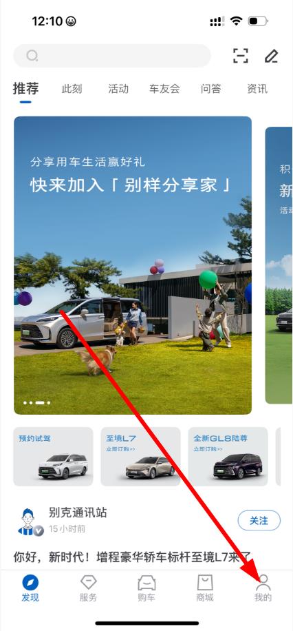1、打開(kāi)ibuick APP進(jìn)入首頁(yè),點(diǎn)擊底部導(dǎo)航欄中我的選項(xiàng)進(jìn)入個(gè)人中心頁(yè)面。