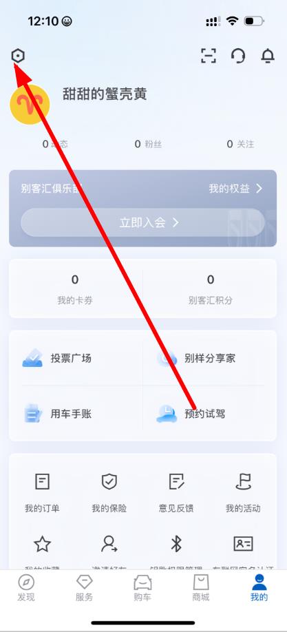 2、在個(gè)人中心頁(yè)面左上角找到設(shè)置圖標(biāo)并點(diǎn)擊,進(jìn)入設(shè)置界面。