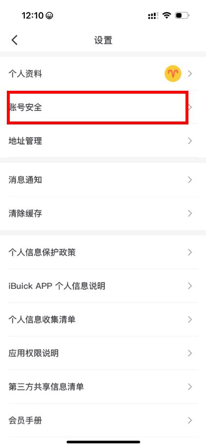 3、在設(shè)置界面中點(diǎn)擊賬號(hào)安全選項(xiàng),進(jìn)入賬號(hào)安全設(shè)置頁(yè)面。