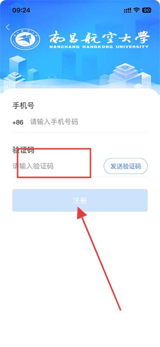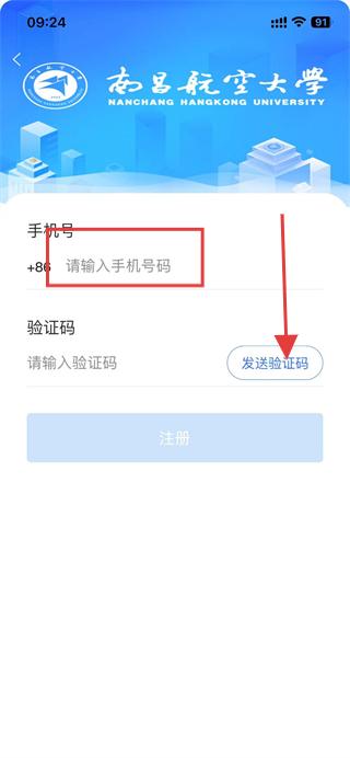 2、進入注冊頁面后,填寫手機號,點擊發(fā)送驗證碼。