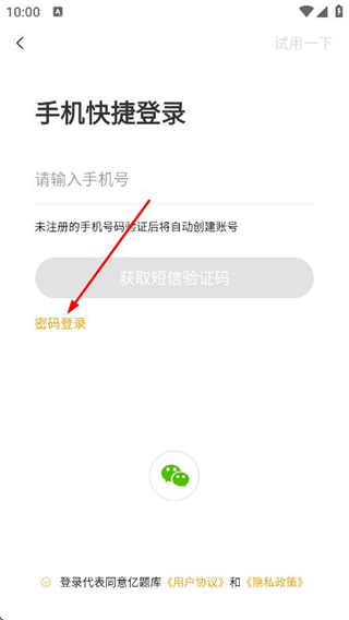3、在登錄頁(yè)面,找到并點(diǎn)擊左下角的密碼登錄選項(xiàng)。