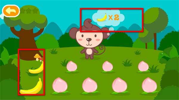2、在學(xué)習(xí)場(chǎng)景中,根據(jù)提示找到對(duì)應(yīng)數(shù)量的香蕉,完成物品識(shí)別任務(wù)。