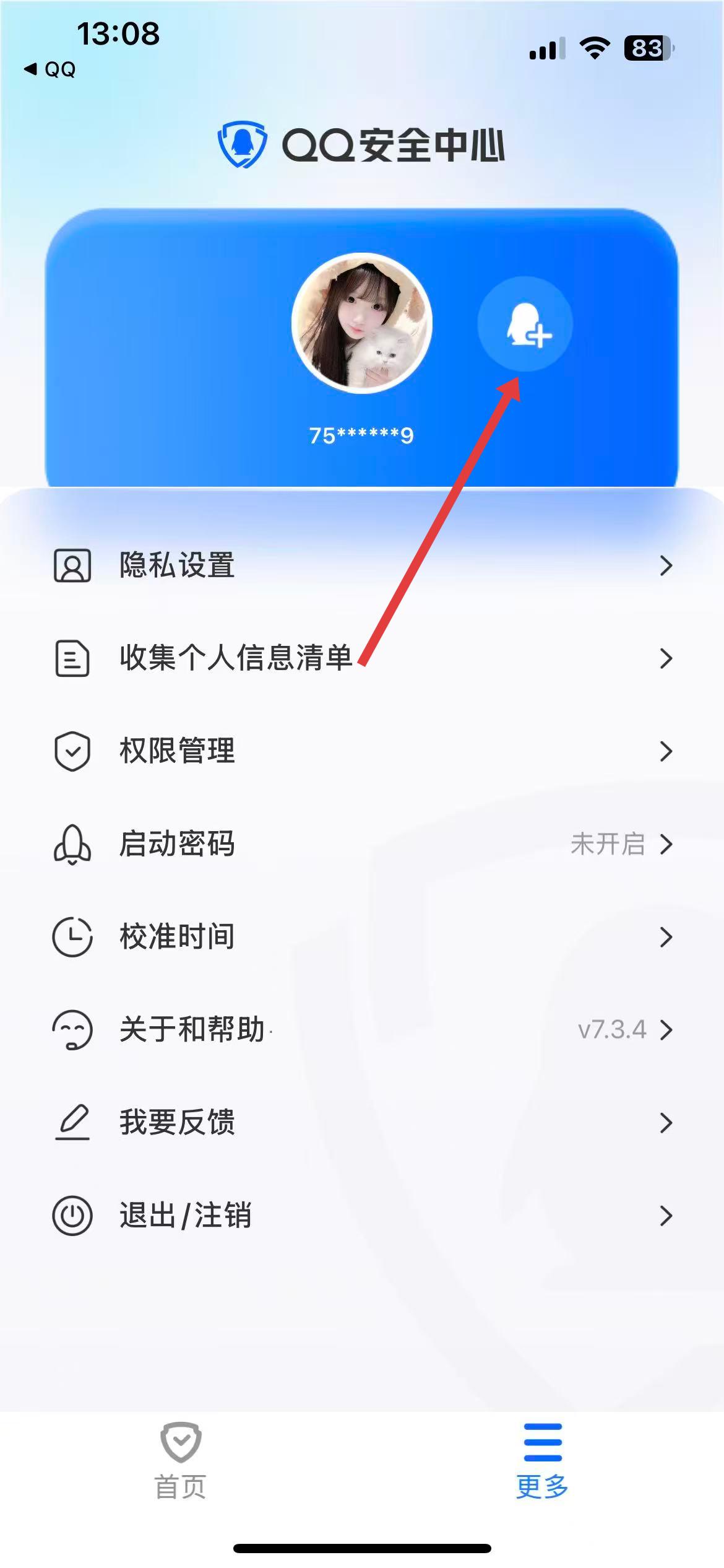 2、在更多界面里,點擊頭像旁的添加賬號圖標。