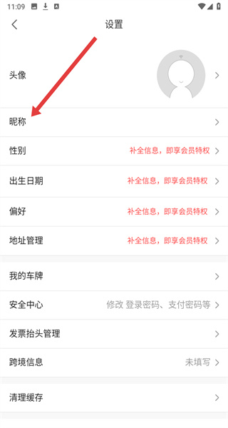 2、在設置界面點擊“昵稱”選項,進入昵稱修改頁面。