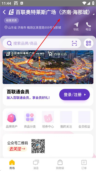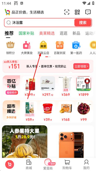1、打開i百聯(lián)APP,在首頁點擊百聯(lián)云店,進入門店選擇相關頁面。
