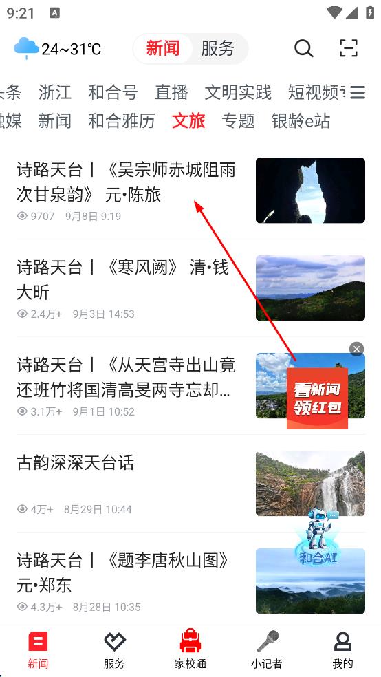 2、進入和合天臺主界面后,在上方的導航欄中,找到“文旅”選項并點擊,此時界面會顯示文旅相關(guān)內(nèi)容。