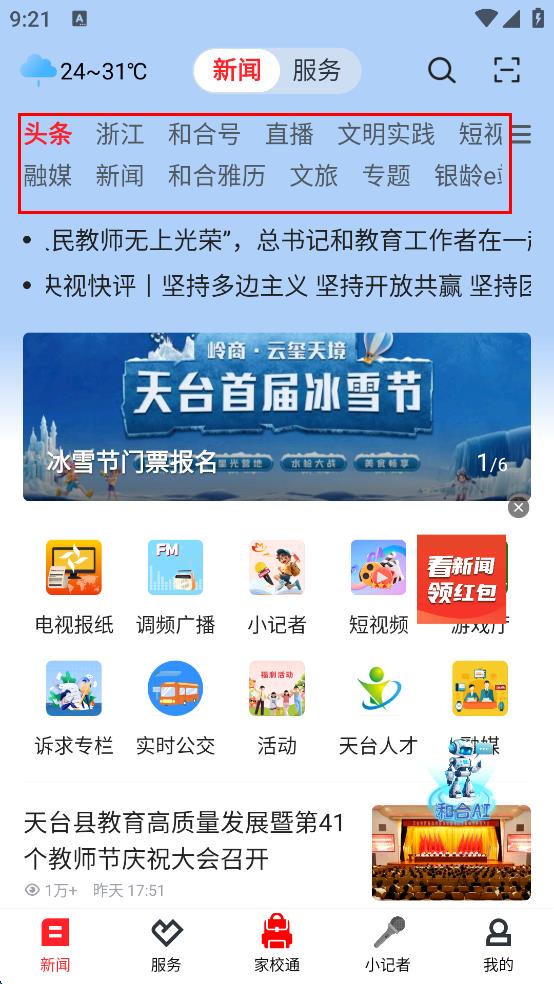 看電視、讀報紙、聽廣播、拍視頻、開直播……,和合天臺APP為粉絲提供豐富、精彩的新聞資訊,讓您人不出門盡曉身邊事,同時還提供方便、快捷的生活服務和“助跑”服務功能,讓您盡享移動網(wǎng)絡時代新生活。